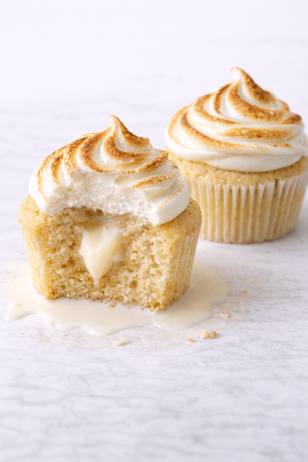 Suave y esponjoso bizcocho de vainilla, intensamente remojado en tres leches, con relleno de manjar y glaseado con delicado merengue suizo.